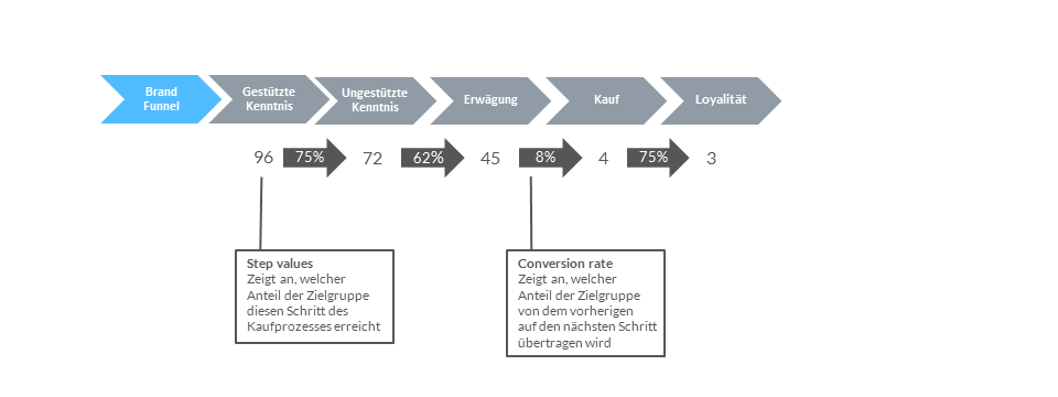 Wir evaluieren Ihren Brand Funnel mithilfe von fünf simplen Schritten:
